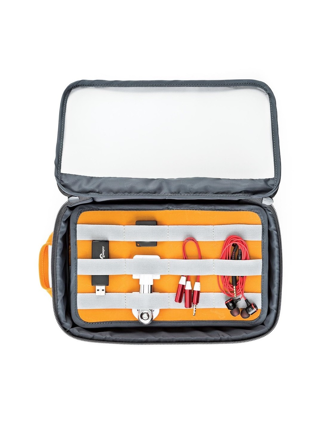 El Estuche de viaje GEARUP CASE LARGE de Lowepro se adapta a fuentes de alimentación, discos duros portátiles, baterías y cargadores.