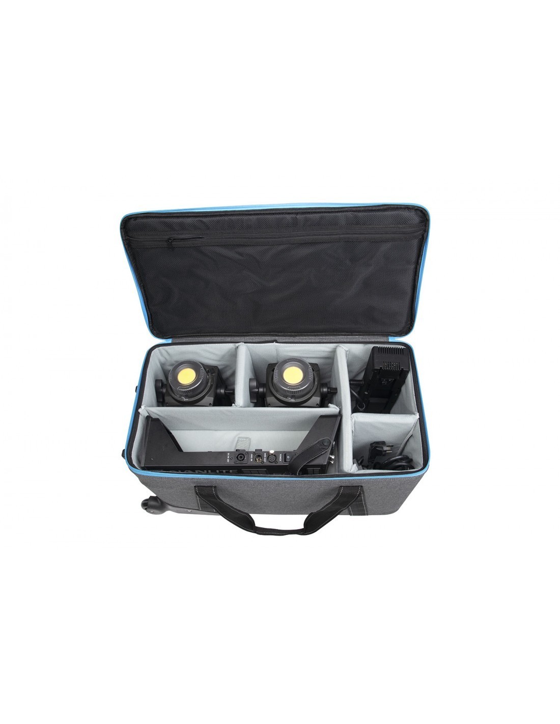 La Maleta Trolley para Forza 300/ 500 de Nanlite, es una maleta con ruedas, asa superior extensible y asas flexibles frontales, que facilitan el transporte y protección de los Focos Forza 300 y 500.