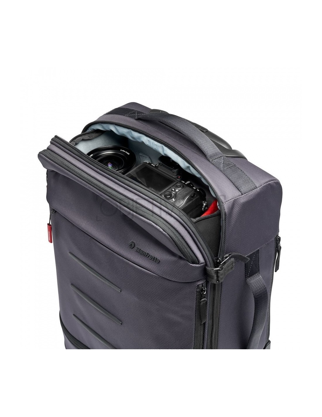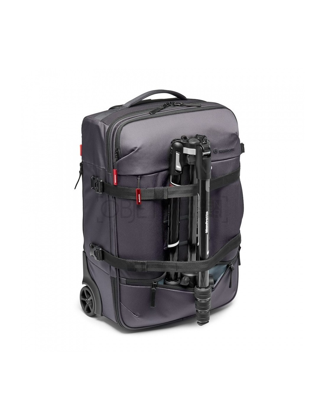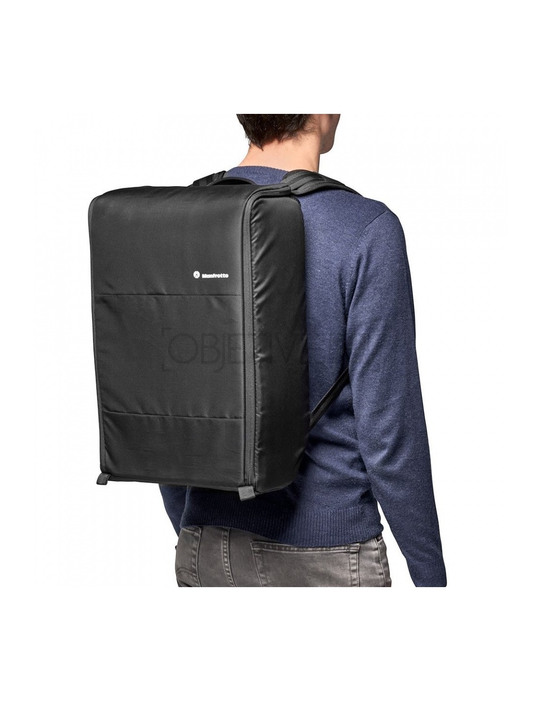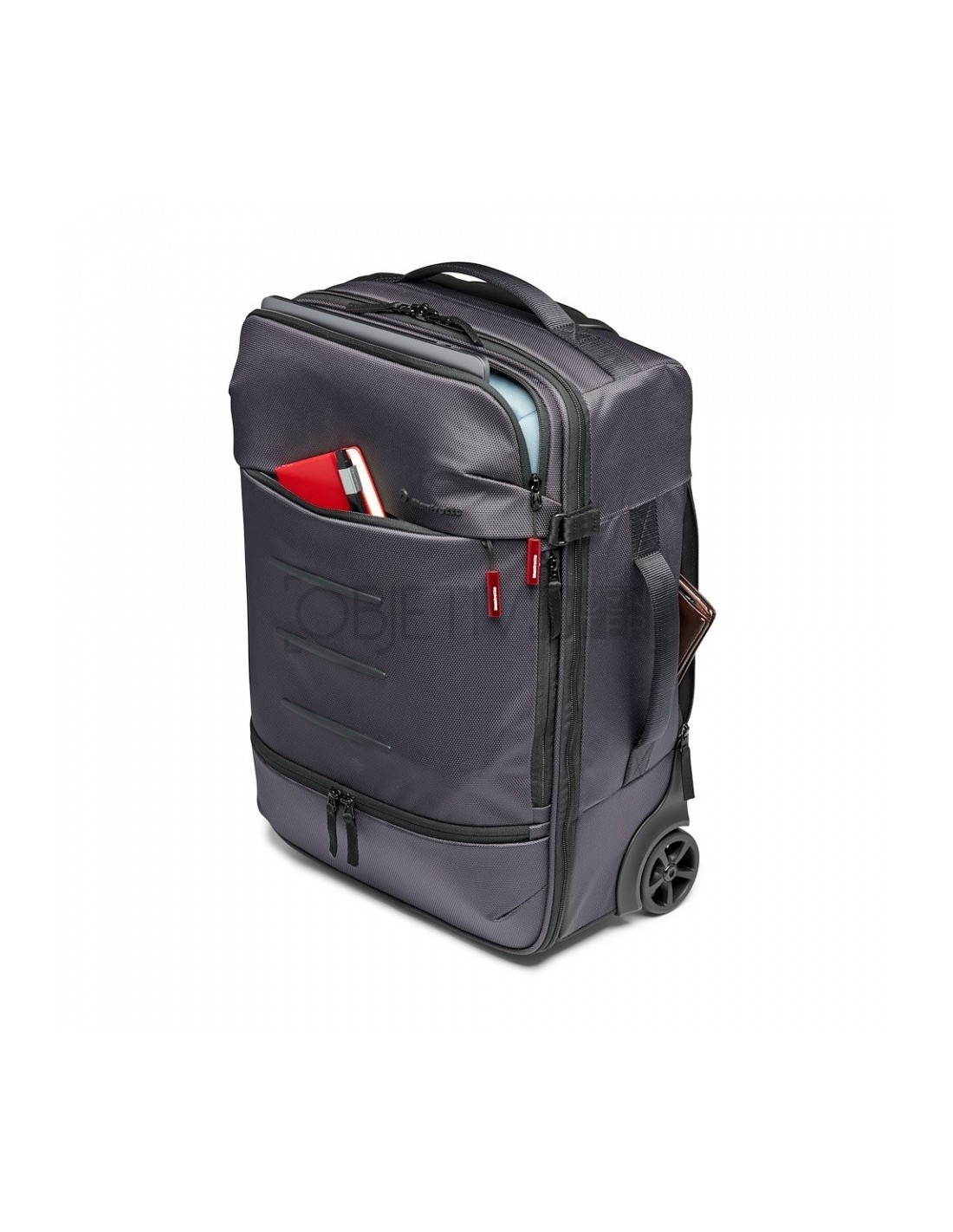 El Trolley fotográfico Manhattan Runner-50 para DSLR/CSC fabricado por Manfrotto, es una mochila convertible a maleta trolley, equipada con asas superior y lateral para un mejor manejo de la misma.