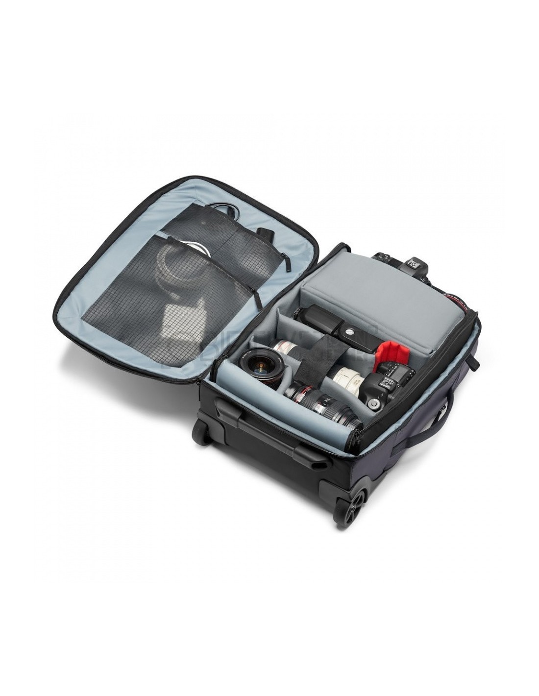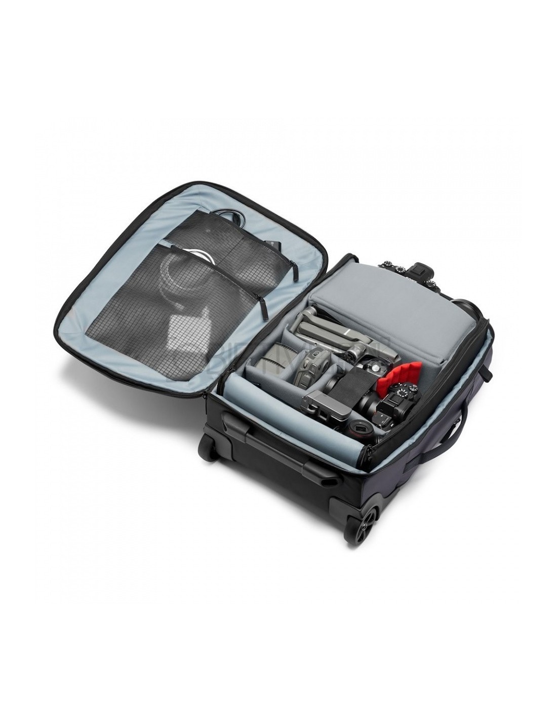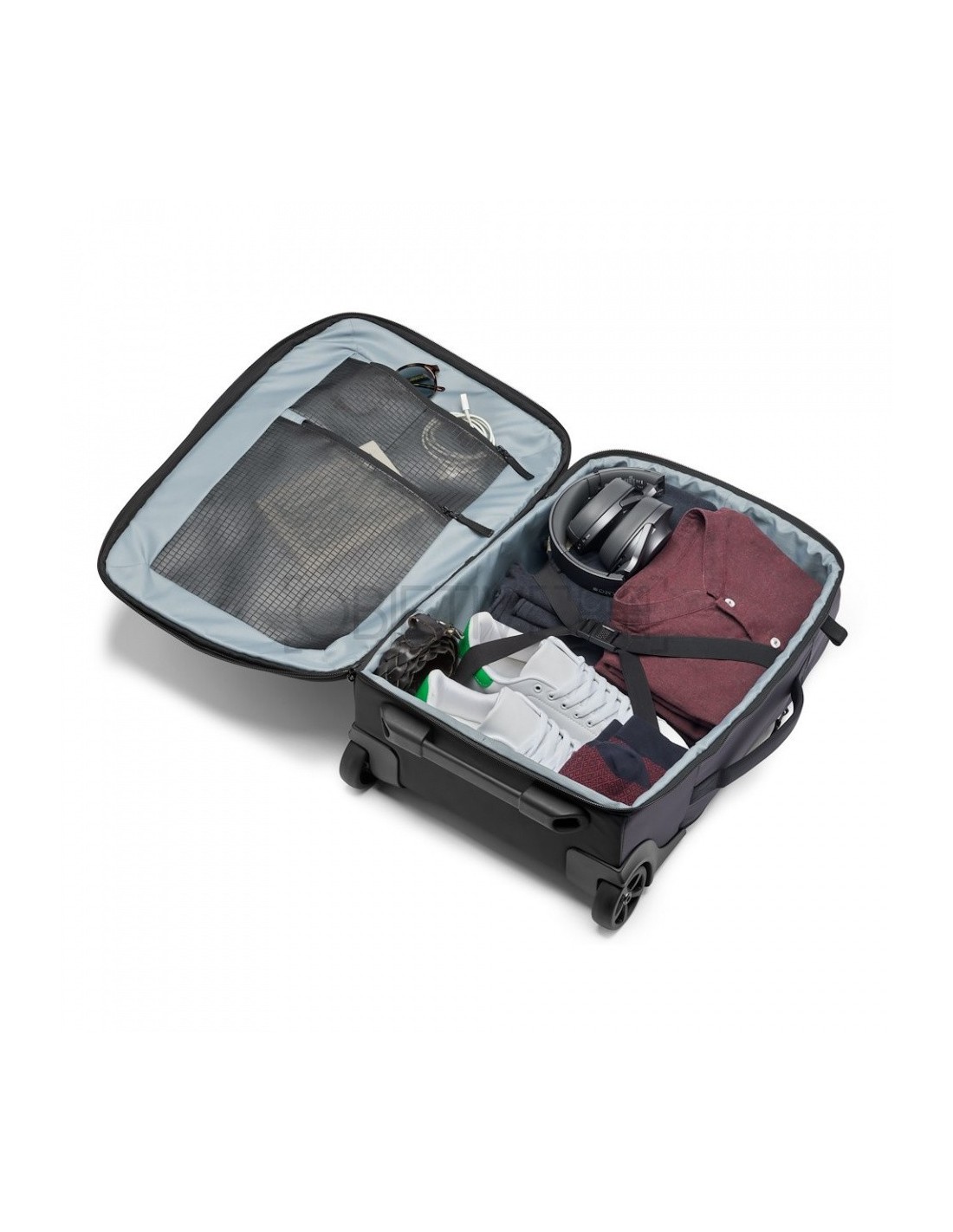 El trolley puede usar en diversas configuraciones: 100% equipo fotográfico, 70% equipo fotográfico y 30% objetos personales, y naturalmente, 100% objetos personales. Cuando necesitemos espacio de almacenamiento extra para nuestros objetos personales, el inserto para equipo fotográfico se puede retirar y podemos transportarlo como una mochila. Alternativamente, podemos usar dicho inserto para almacenar nuestro equipo con seguridad cuando no esté en uso. Además, dos bolsillos exteriores proporcionan acceso fácil al compartimiento para cámara en el interior.