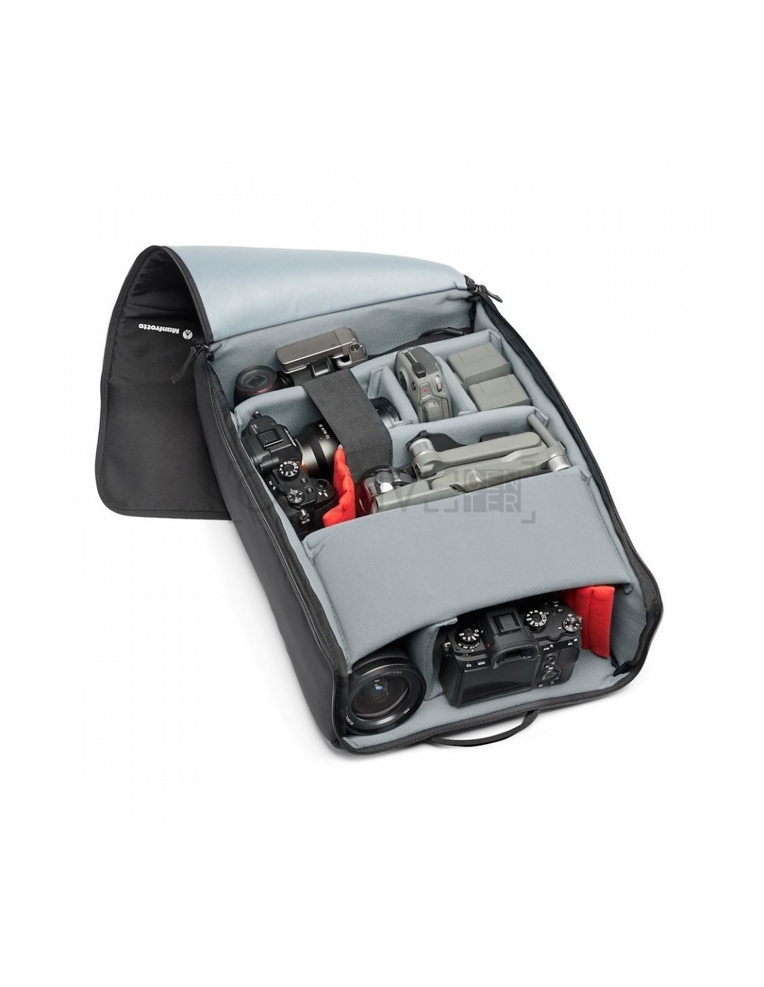 El equipo fotográfico se aloja en el inserto extraíble Manfrotto, que protege al máximo nuestro equipamiento. El núcleo de dicho inserto integra el reconocido sistema de acolchado FLEXY CAMERA SHELL: este innovador sistema de protección, altamente resistente, desarrollado por Manfrotto, se adapta a diferentes tamaños de equipo para lograr la máxima seguridad en el transporte.