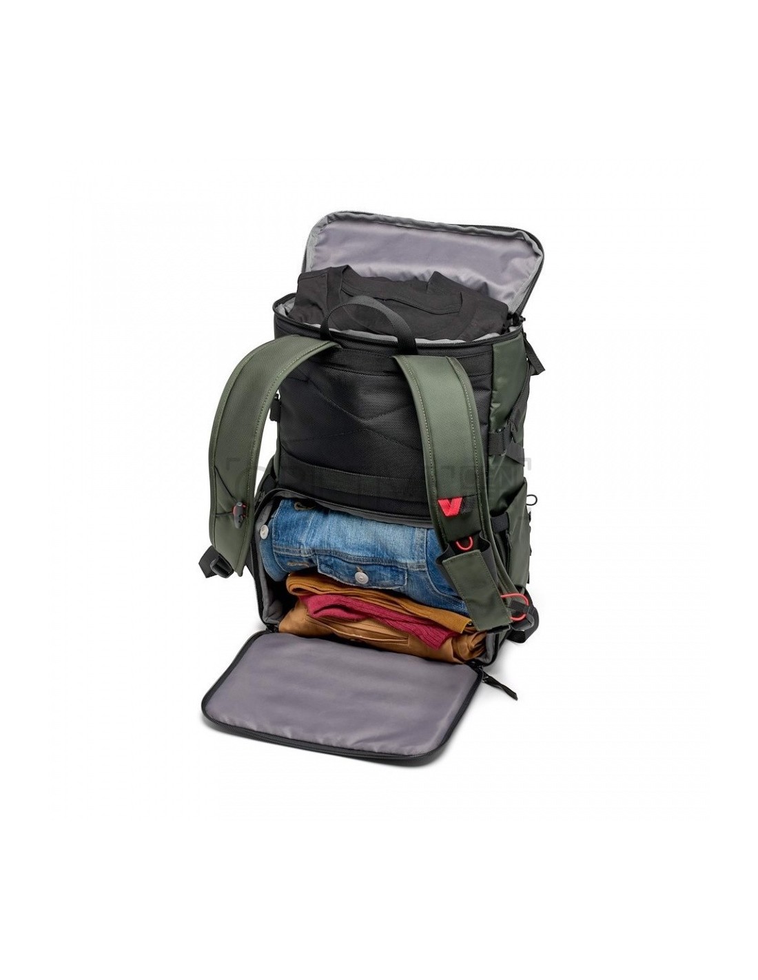 El compartimento acolchado y extraíble para la cámara cuenta con el nuevo sistema de protección M-Guard™ de Manfrotto, un sistema de divisores modulares de alto rendimiento que mejora las posibilidades de personalización y la resistencia a impactos de los compartimentos internos. Probado en laboratorio para garantizar el más alto nivel de protección y resistencia a los golpes, especialmente en las áreas de la bolsa donde la protección es más crucial. Los divisores M-Guard están fabricados en espuma EVA de alta densidad, y proporcionan una absorción de impactos excepcional mientras mantienen un perfil extremadamente fino. Dispone de una funda acolchada extraíble para portátil de hasta 14 pulgadas, a la que se puede acceder a través de la parte superior y utilizarla también por separado. El acceso al compartimento de la cámara es intercambiable de la parte delantera a la trasera gracias al diseño único que permite elegir el acceso que mejor se adapte a ti: extrae fácilmente el compartimento de la cámara y la funda del portátil y cambia de la apertura trasera a la delantera en un instante, al tiempo que reposiciona la funda del portátil.
