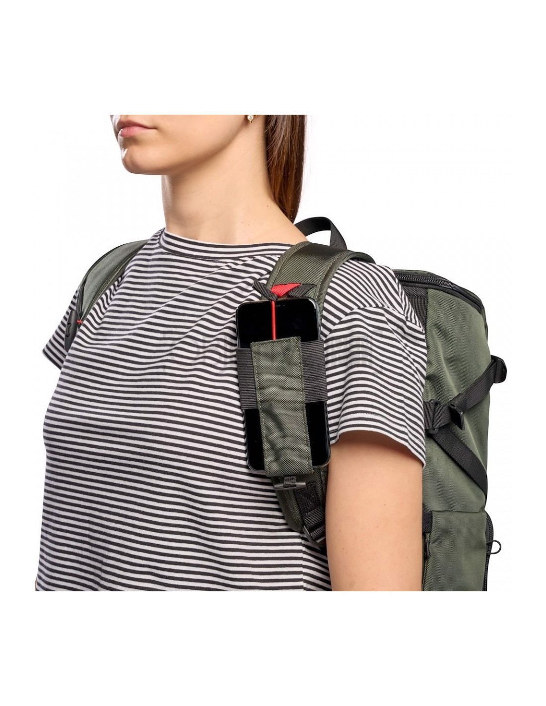Para mantener todo a salvo de la humedad y la lluvia, la mochila Manfrotto Slim está fabricada con material repelente al agua. También es compatible con el estuche para smartphone Street Crossbody (se vende por separado).