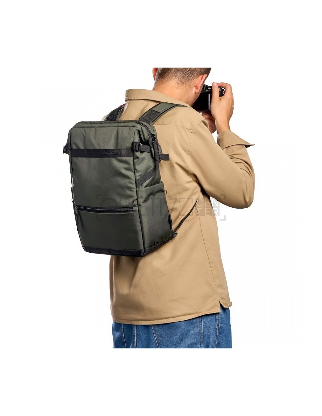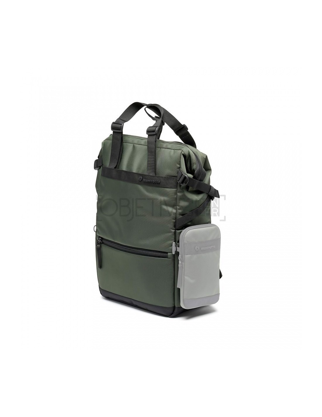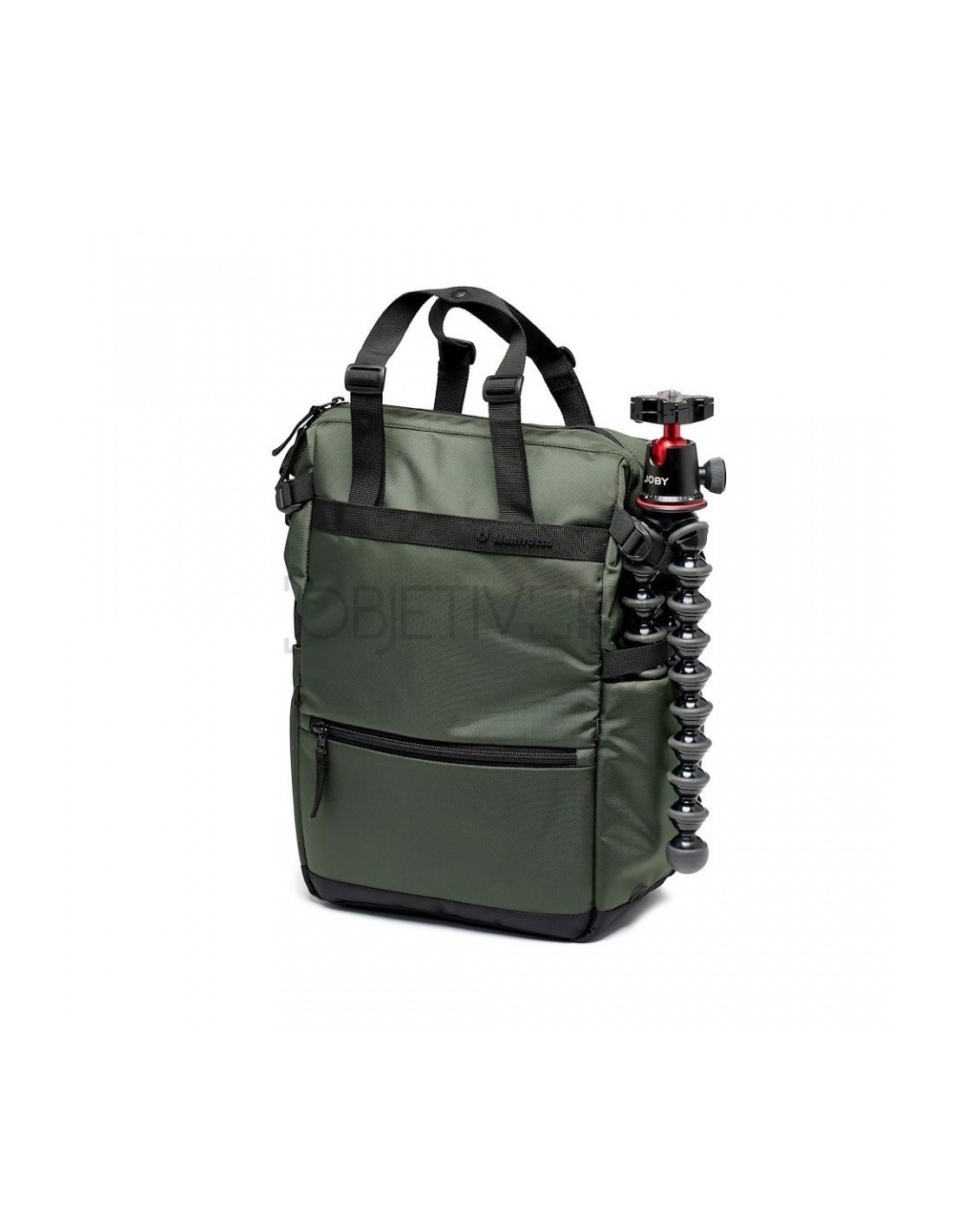 La bolsa también cuenta con un accesorio lateral para un trípode de pequeño tamaño en un lado y un soporte para botellas de agua en el otro. En la parte delantera hay un práctico bolsillo externo para tener los objetos esenciales siempre al alcance de la mano. Las dos correas de los hombros, cuando están en modo mochila, cuentan con un soporte para el smartphone y un pequeño accesorio para el trípode, para tener siempre a mano tus herramientas de creación.