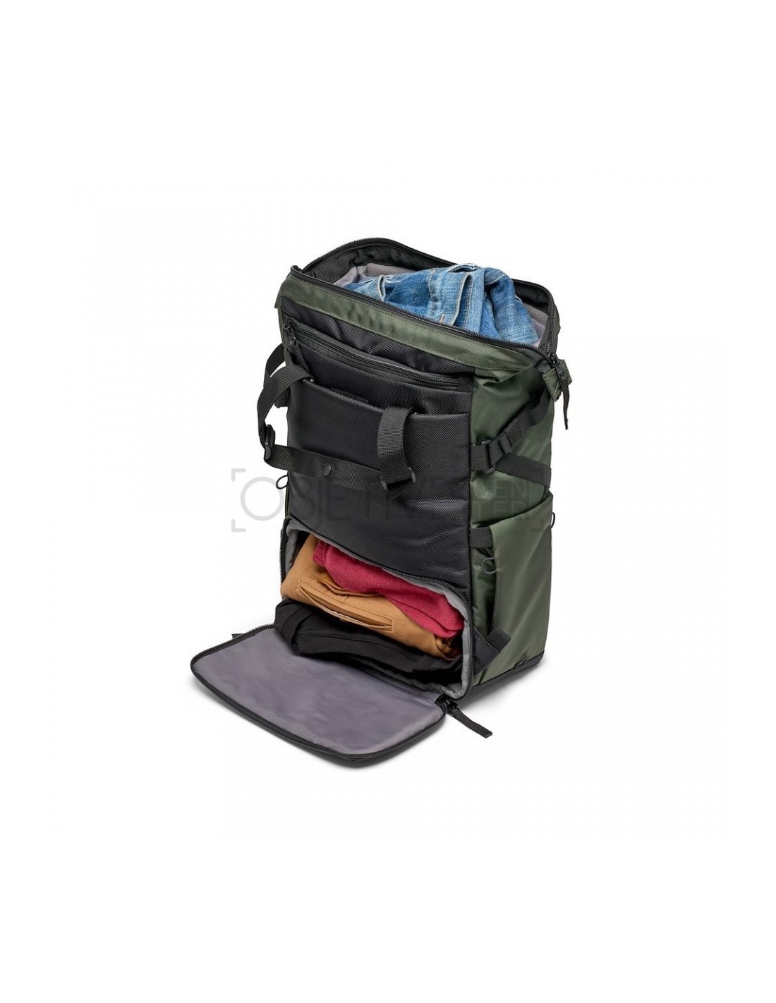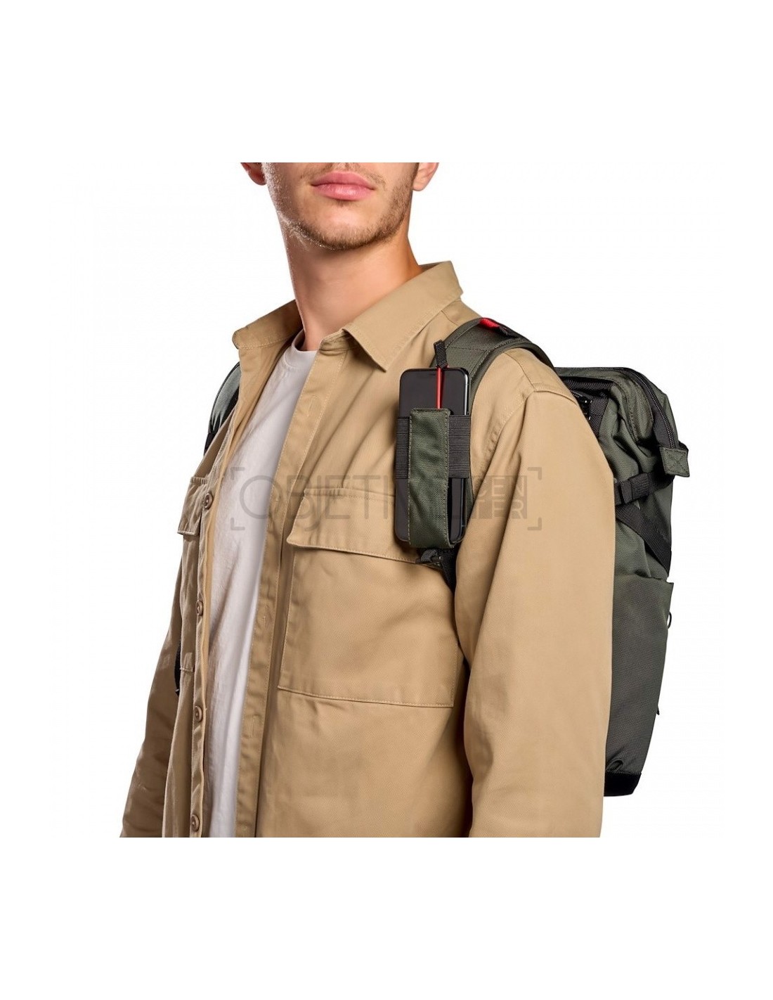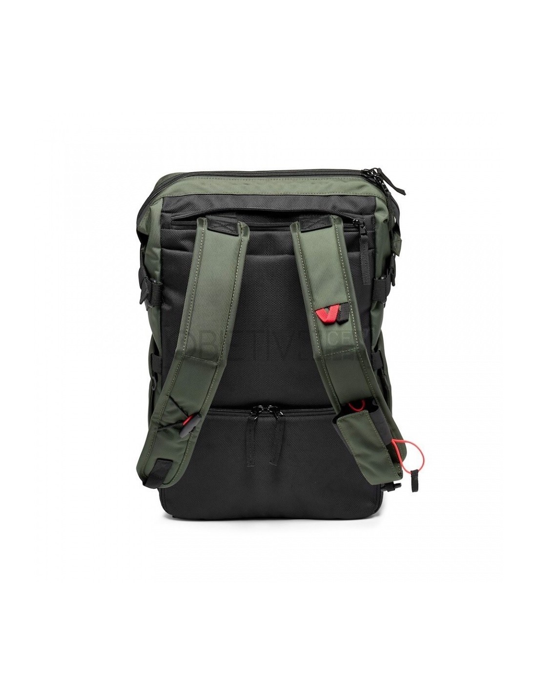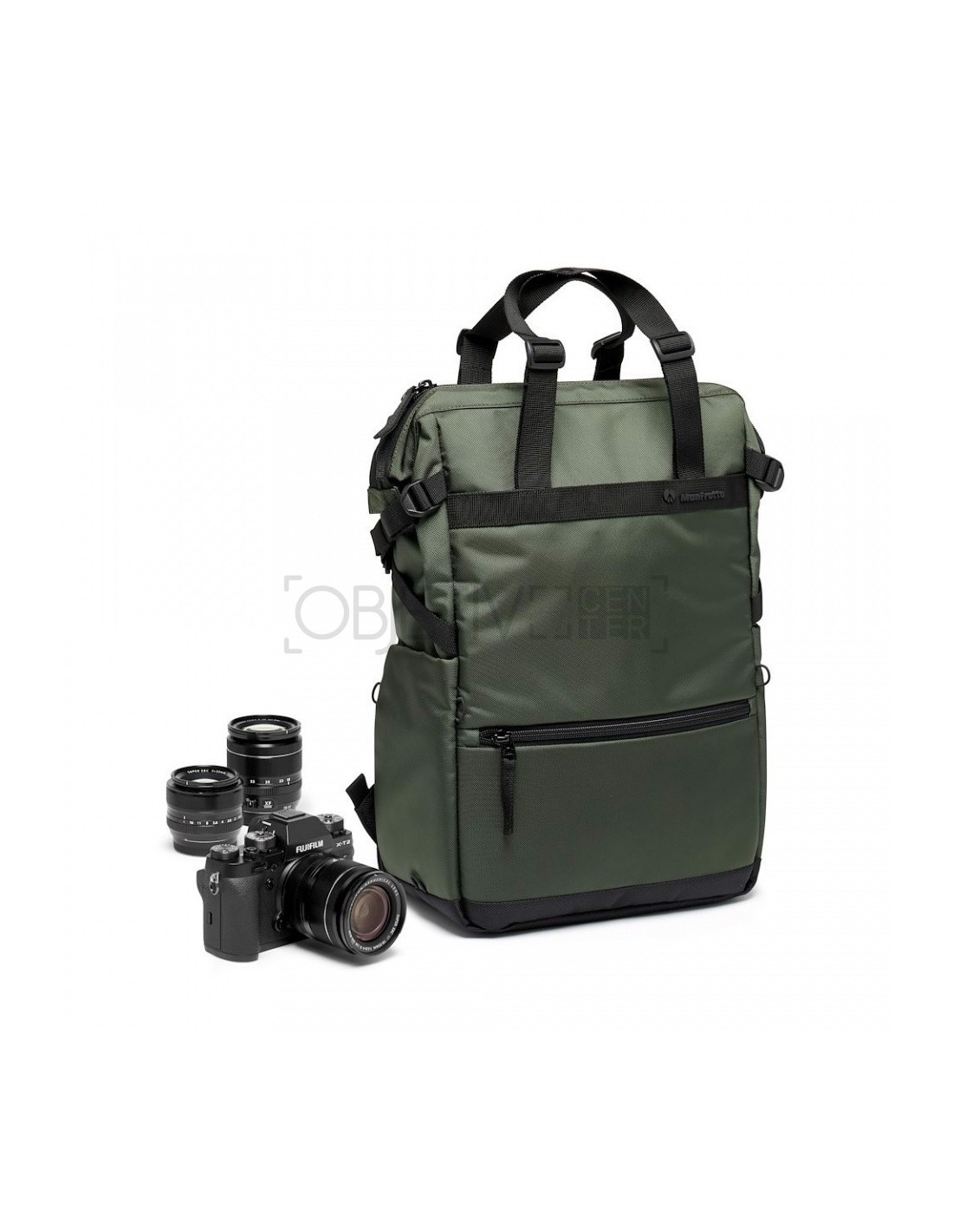 La bolsa también cuenta con un accesorio lateral para un trípode de pequeño tamaño en un lado y un soporte para botellas de agua en el otro. En la parte delantera hay un práctico bolsillo externo para tener los objetos esenciales siempre al alcance de la mano. Las dos correas de los hombros, cuando están en modo mochila, cuentan con un soporte para el smartphone y un pequeño accesorio para el trípode, para tener siempre a mano tus herramientas de creación.