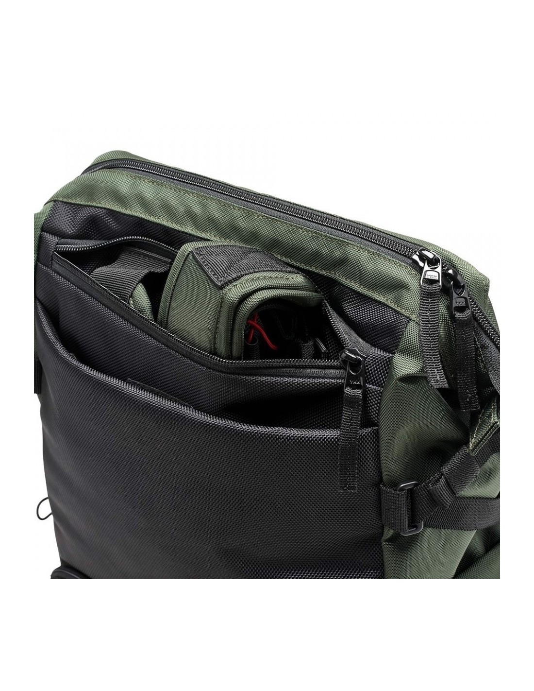 Esta bolsa es perfecta para viajar y para uso diario. Ofrece un espacioso compartimento superior para organizar todos tus objetos con una amplia apertura para poder ver el interior en su totalidad. Tiene capacidad para portátil de 14 pulgadas. El compartimento inferior, con una abertura de cremallera específica, puede llevar una cámara sin espejo con y uno o dos objetivos pequeños adicionales.