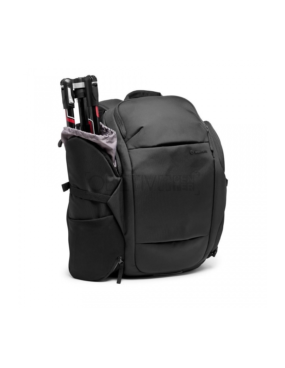 Si se necesita más espacio, un bolsillo lateral acolchado extensible ofrece espacio adicional para un trípode de tamaño de viaje.