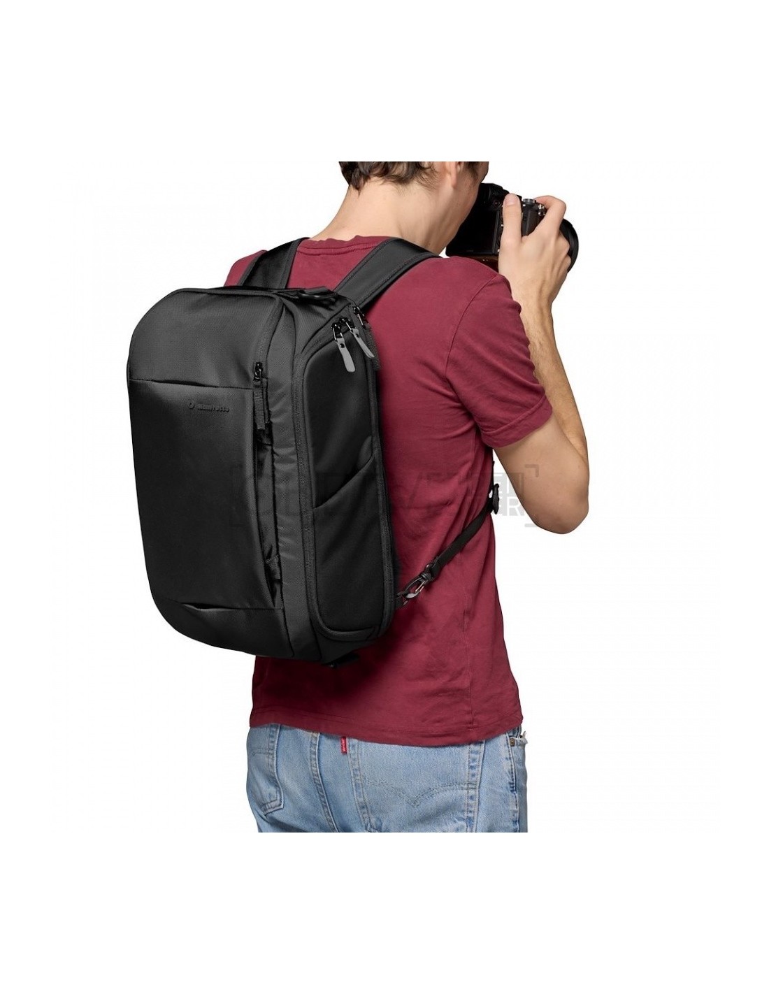 Está diseñada para las cámaras DSLR y CSC junto con el portátil. Se ha diseñado con un espacio de almacenamiento específico para objetos personales y equipo fotográfico en el compartimento principal de acceso rápido. Su interior tiene capacidad para cámara DSLR o sin espejo con hasta 2 objetivos.