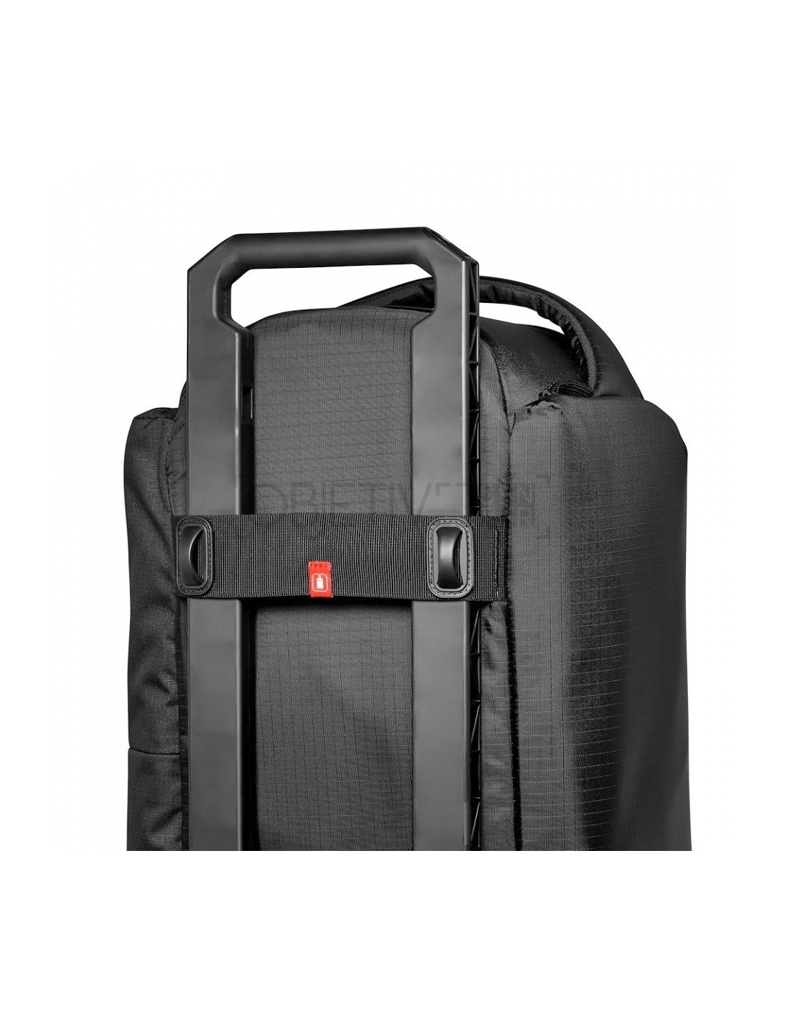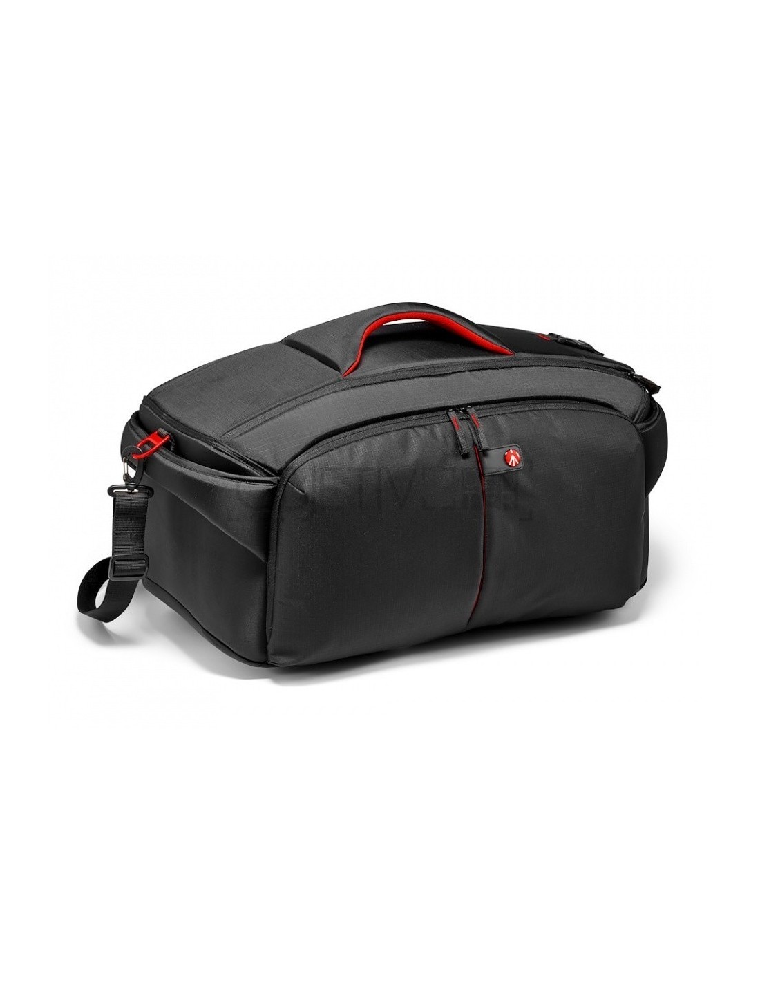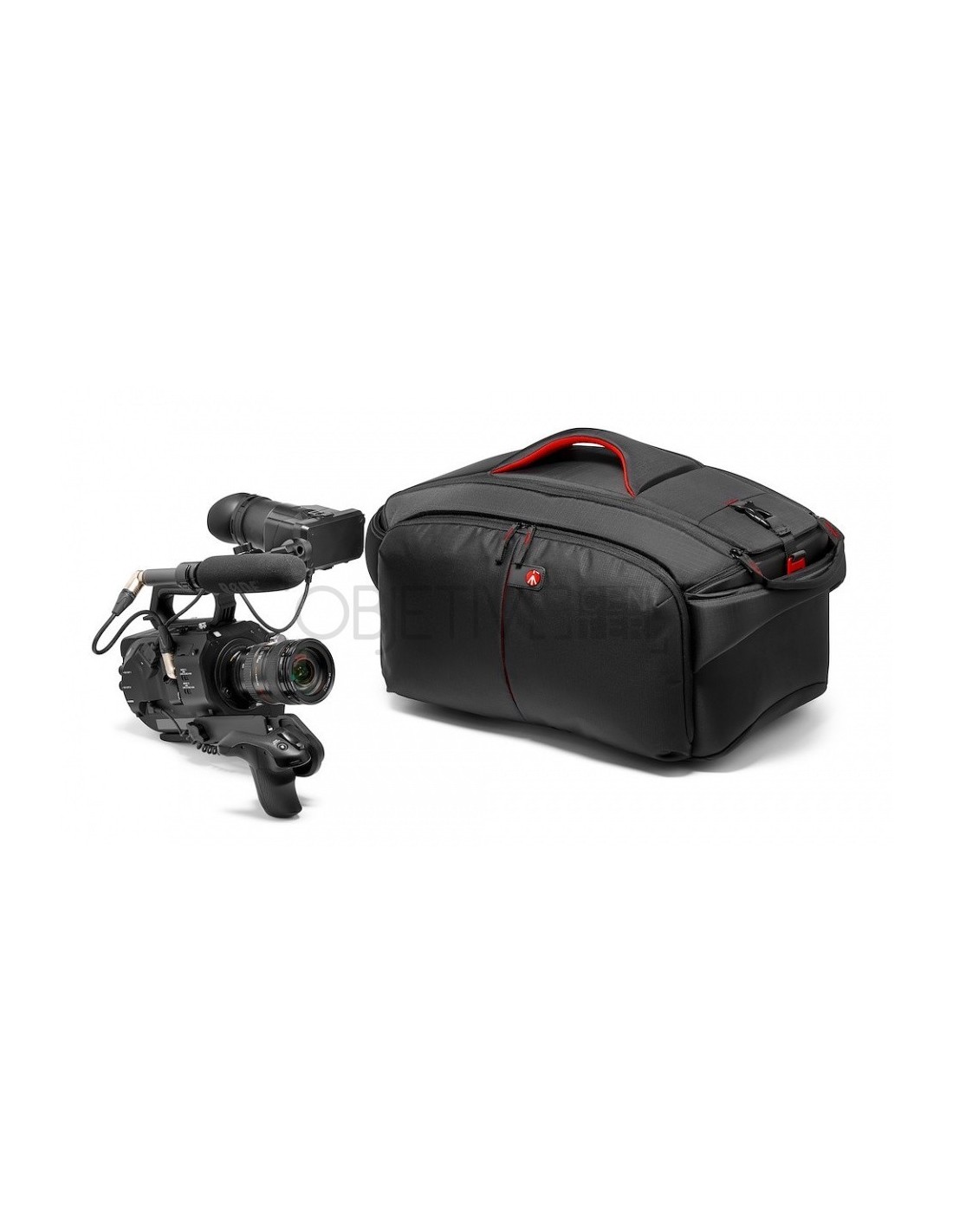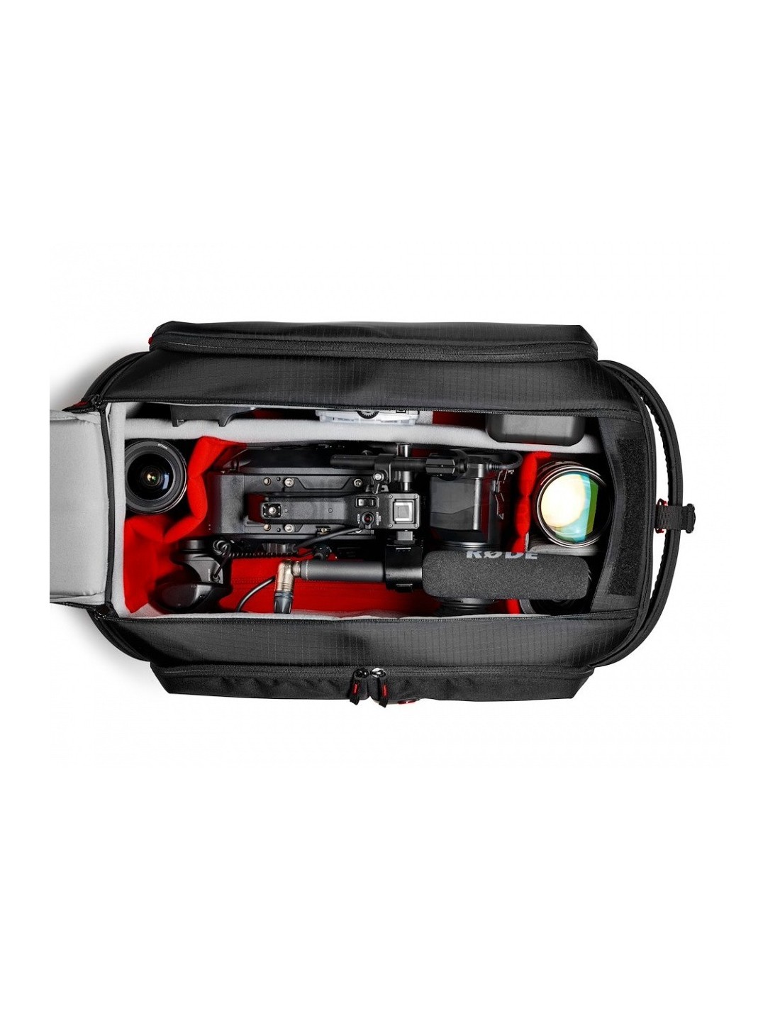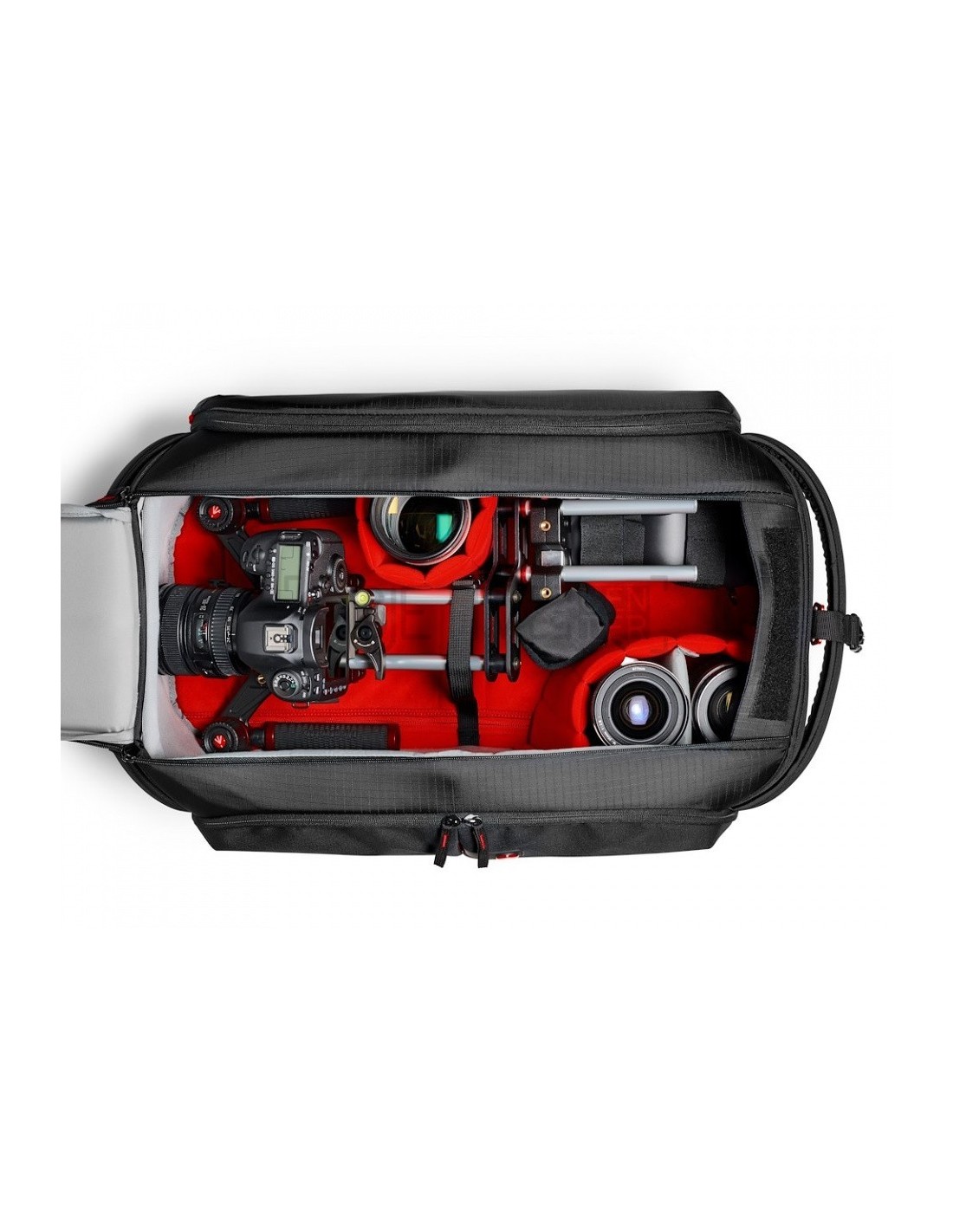 La parte inferior del compartimiento y los divisores rojos están realizados en una espuma de forma especial para crear un Manfrotto Protection System (CPS) alrededor del cuerpo de la cámara, proporcionando así protección contra los golpes y absorción de las vibraciones.