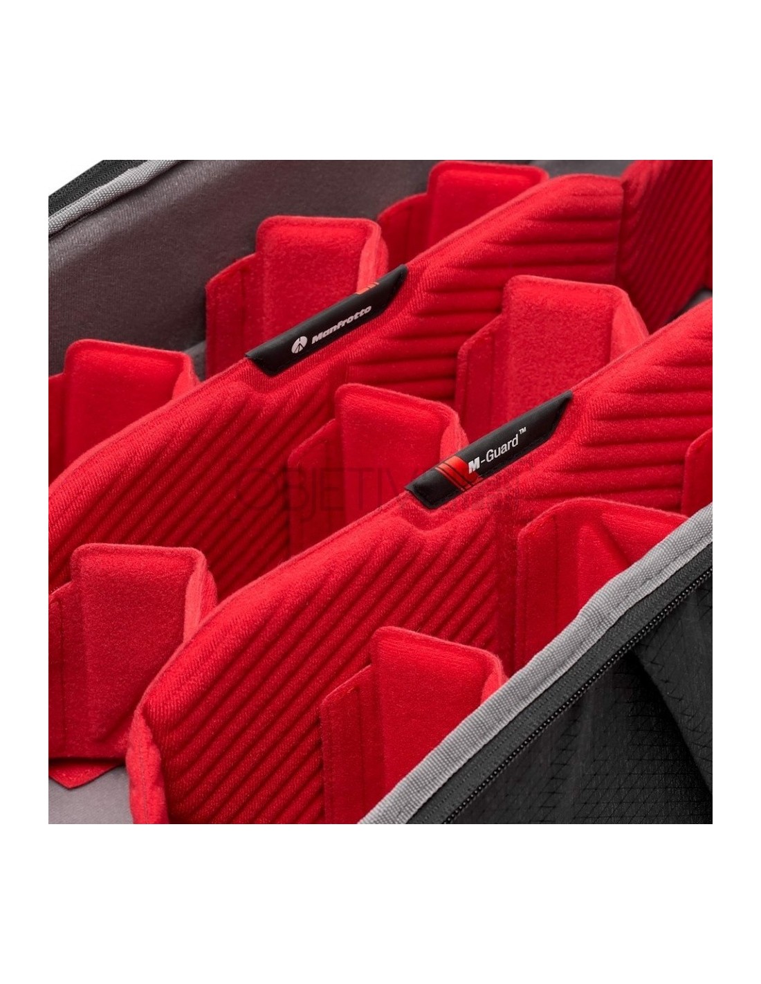 Este innovador sistema ha sido específicamente para los nuevos modelos de bolsas y mochilas Manfrotto, y ha sido probado en laboratorio para garantizar el más alto nivel de protección y resistencia a los golpes, especialmente en las áreas de la bolsa donde la protección es más crucial. Los divisores M-Guard están fabricados en espuma EVA de alta densidad, y proporcionan una absorción de impactos excepcional mientras mantienen un perfil extremadamente fino.