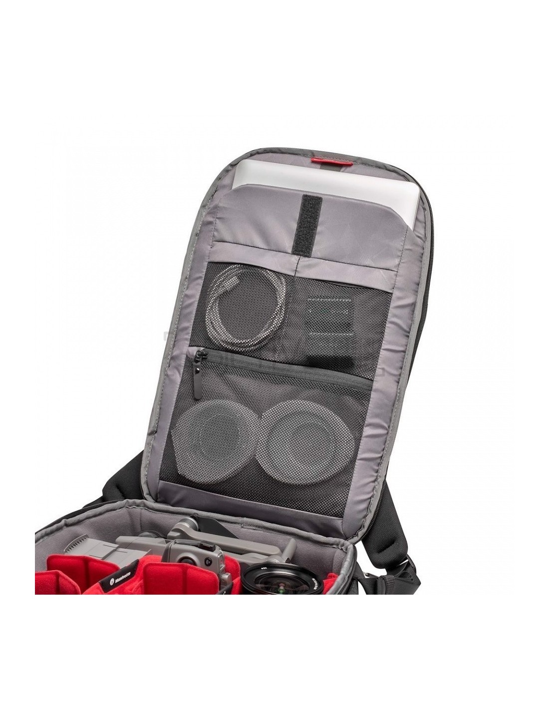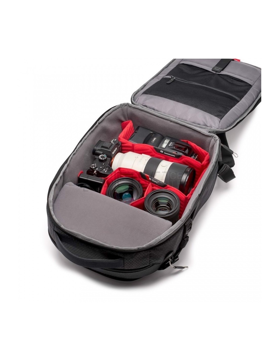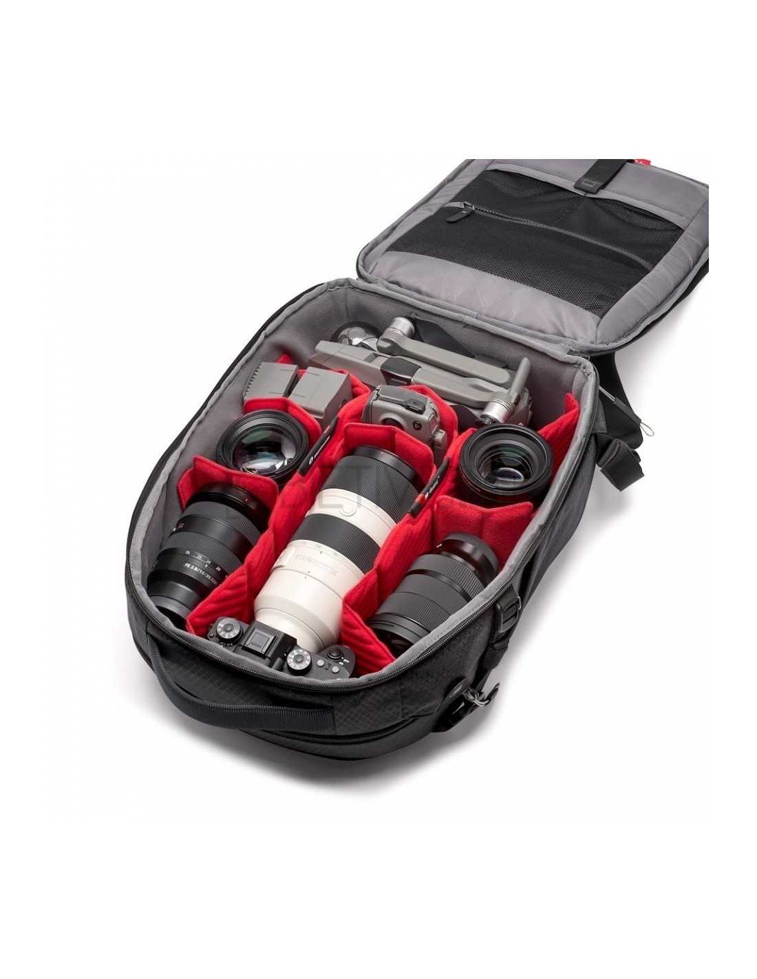 Tiene capacidad tiene capacidad para 2 ó 3 cámaras DSLR de fotograma completo o sin espejo con empuñadura de retrato en el compartimento principal, además de varios objetivos. La organización interna puede personalizarse para satisfacer diferentes necesidades de almacenamiento con el panel interior móvil que divide el espacio interno: el compartimento superior puede dedicarse en un 30% a los artículos personales y el otro 70% al equipo al que se accede fácilmente desde la apertura trasera. El punto de acceso superior también puede servir como alternativa para acceder a las cámaras u objetivos más utilizados.