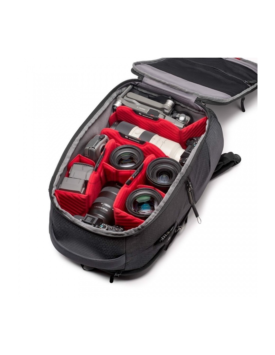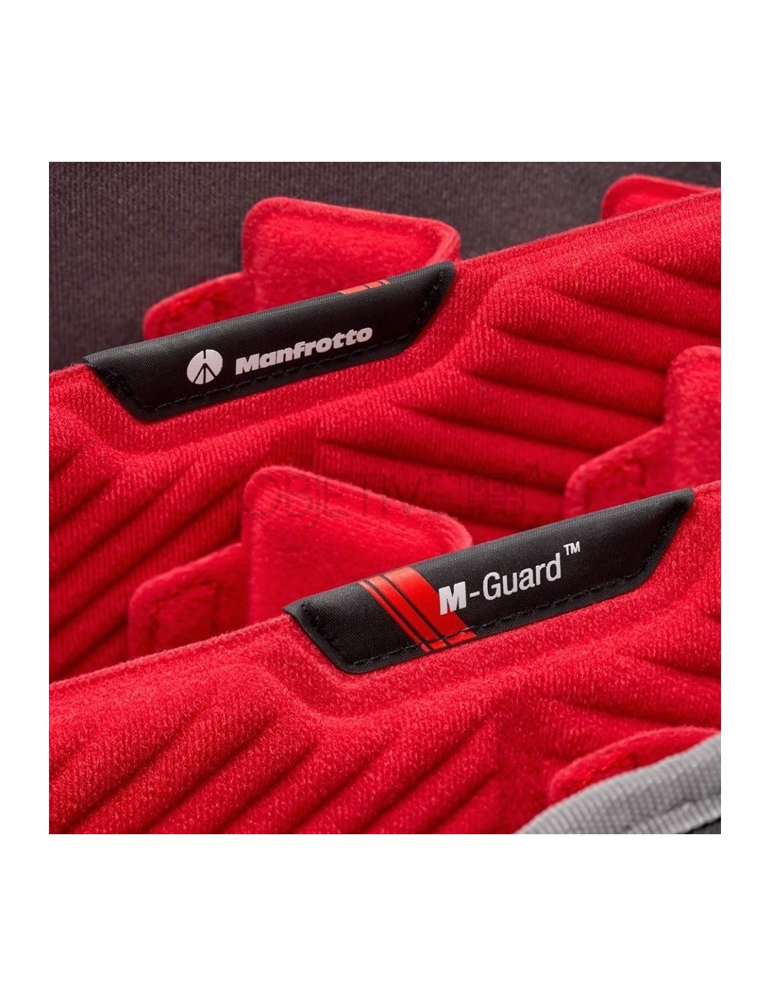 Las mochilas Pro Light incorporan el nuevo sistema de protección M-Guard, un sistema de divisores modulares de alto rendimiento que mejora las posibilidades de personalización y la resistencia a impactos de los compartimentos internos. Este innovador sistema ha sido específicamente para los nuevos modelos de bolsas y mochilas Manfrotto, y ha sido probado en laboratorio para garantizar el más alto nivel de protección y resistencia a los golpes, especialmente en las áreas de la bolsa donde la protección es más crucial. Los divisores M-Guard están fabricados en espuma EVA de alta densidad, y proporcionan una absorción de impactos excepcional mientras mantienen un perfil extremadamente fino.