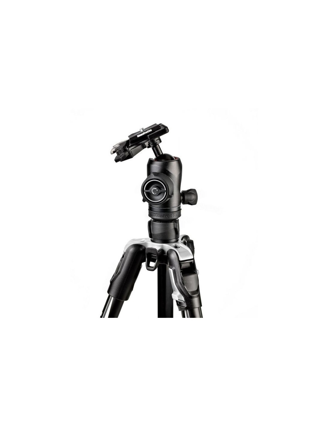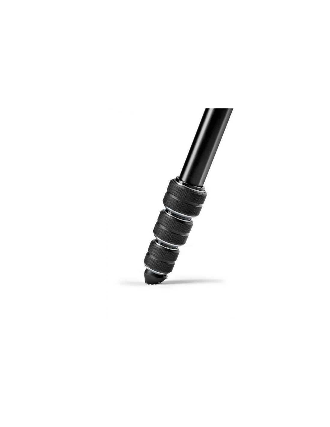 El trípode está equipado con la rótula de bola de aluminio Advanced 494 de Manfrotto, una rótula pequeña pero potente e intuitiva que permite un movimiento de cámara rápido y preciso. La rótula 494 tiene tres controles independientes: una perilla principal para controlar el bloqueo de esfera, una perilla de control de fricción integrada que ajusta la tensión de la bola para que el peso del equipo esté siempre perfectamente equilibrado; una perilla panorámica independiente que mantiene plano el horizonte y mueve la cámara horizontalmente, permitiendo tomas de paisajes sorprendentes.