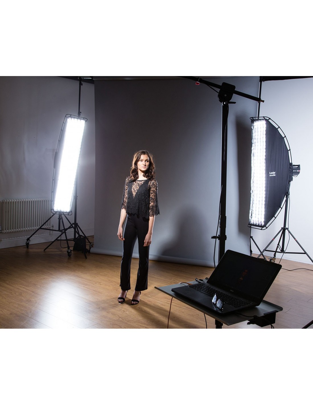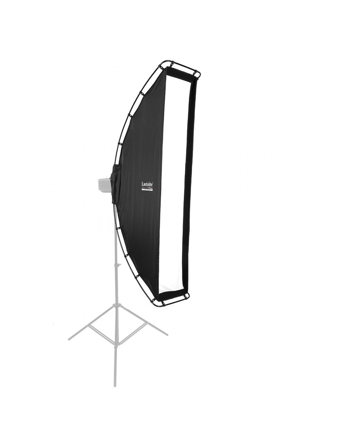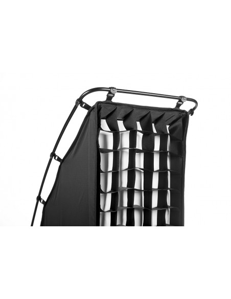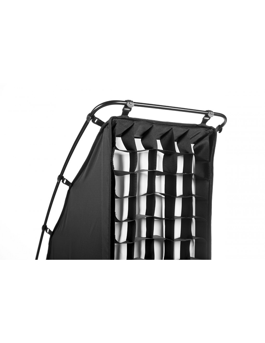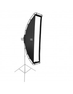 De forma alargada y en medidas de 25 cm x 150 cm en proporción 6:1, incorpora doble difusor interno y externo para un reparto muy uniforme de la luz (que usados juntos producen una pérdida de luz de 2 f-stop) y puede utilizarse tanto en posición vertical como horizontal.