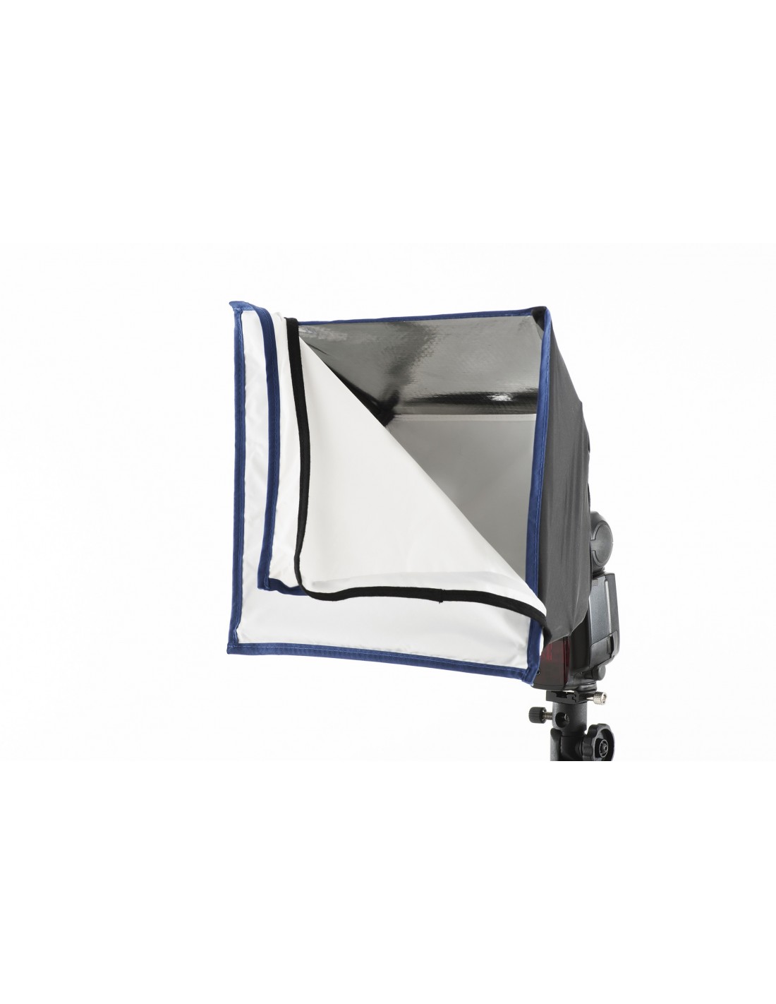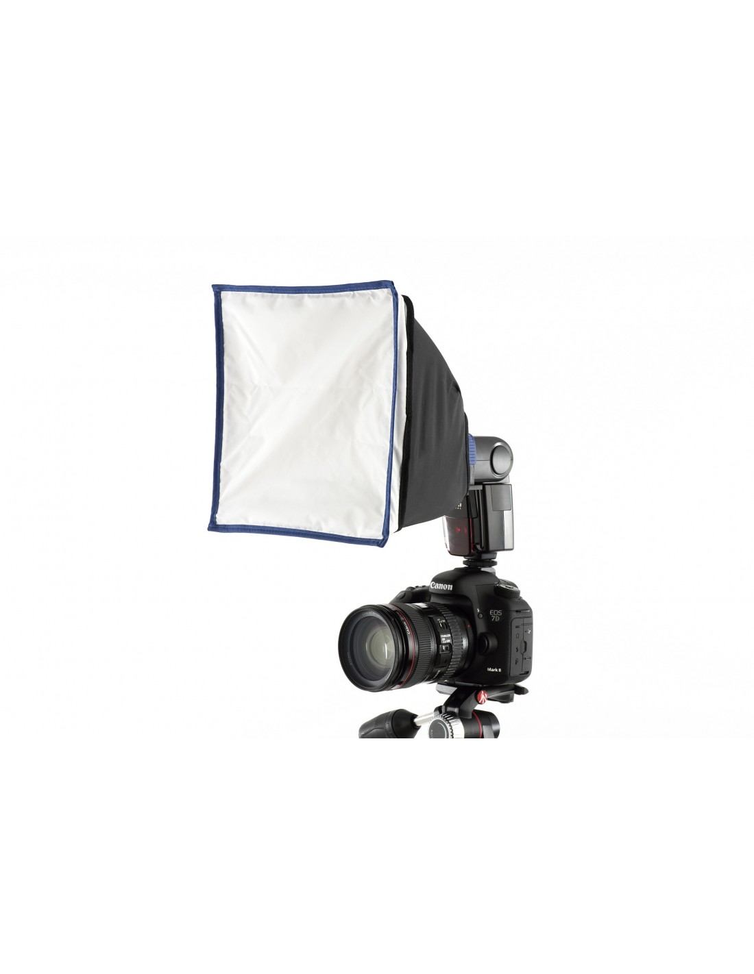 El Ezybox Speed-Lite 2 es un softbox compacto y liviano diseñado para funcionar específicamente con flashes que funcionan con baterías.