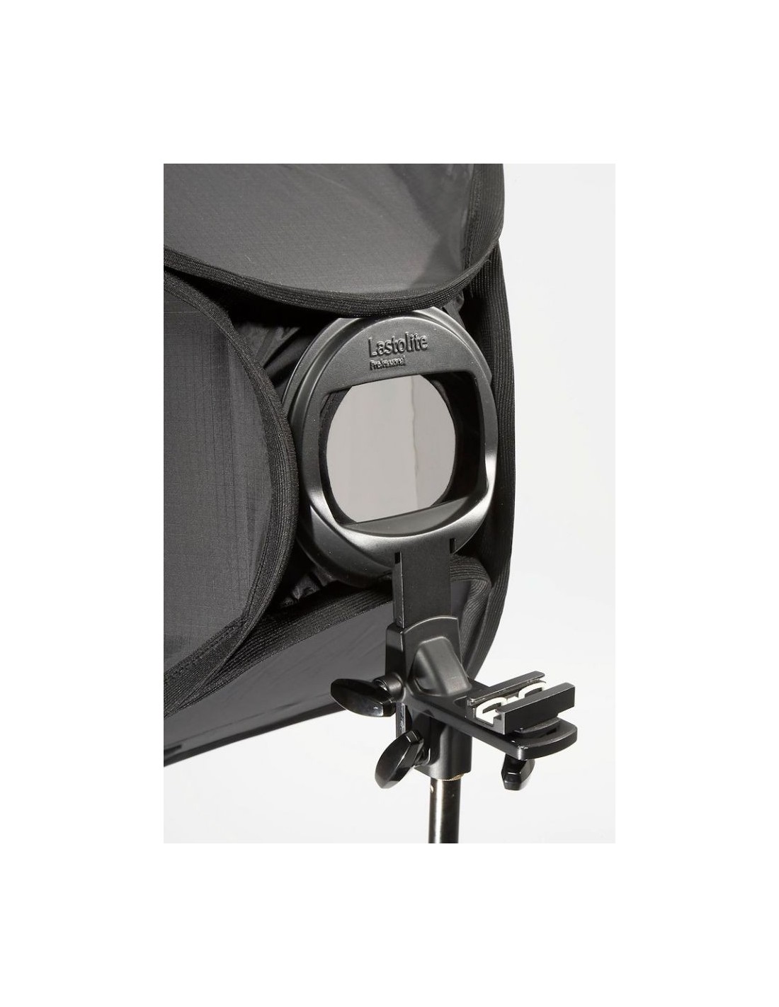 La Ventana difusora Ezybox Hotshoe se pliega plano de la misma manera que los otros modelos Ezybox.