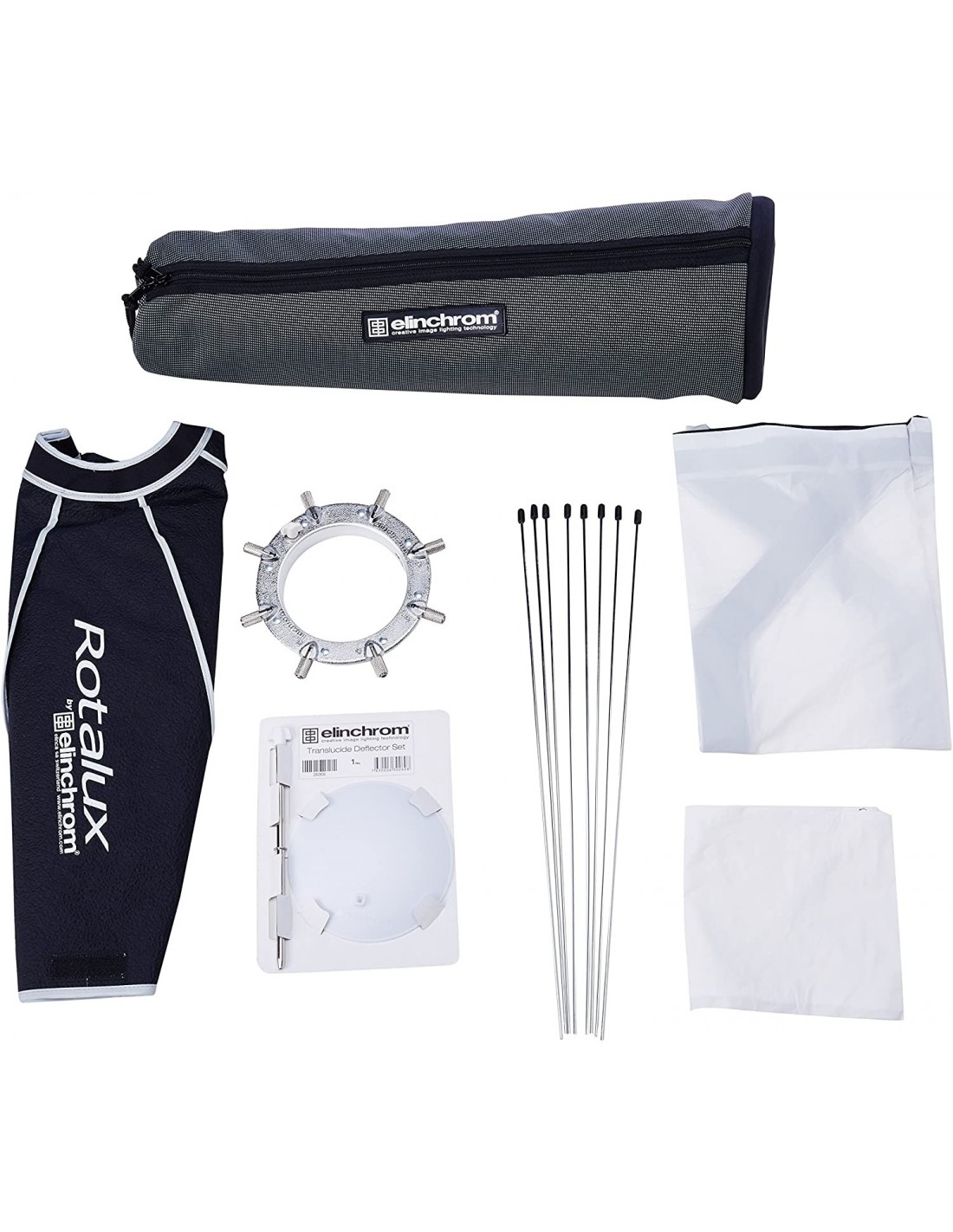 Además, con el juego de deflectores opcional, que aprovecha el exclusivo eje central de los flashes y antorchas de flash Elinchrom, se puede modificar la suavidad, dureza y el tono de la luz como en ningún otro sistema de softbox.