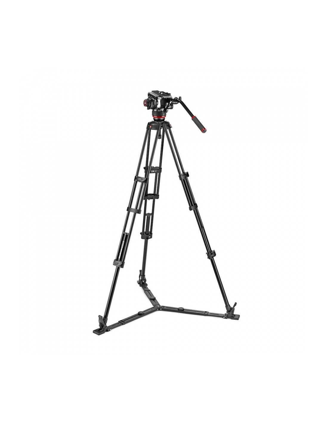 Sistema de video profesional que se se compone de la rótula de video fluida 504X y el trípode de aluminio MVTTWINGA con estabilizador a ras de suelo.