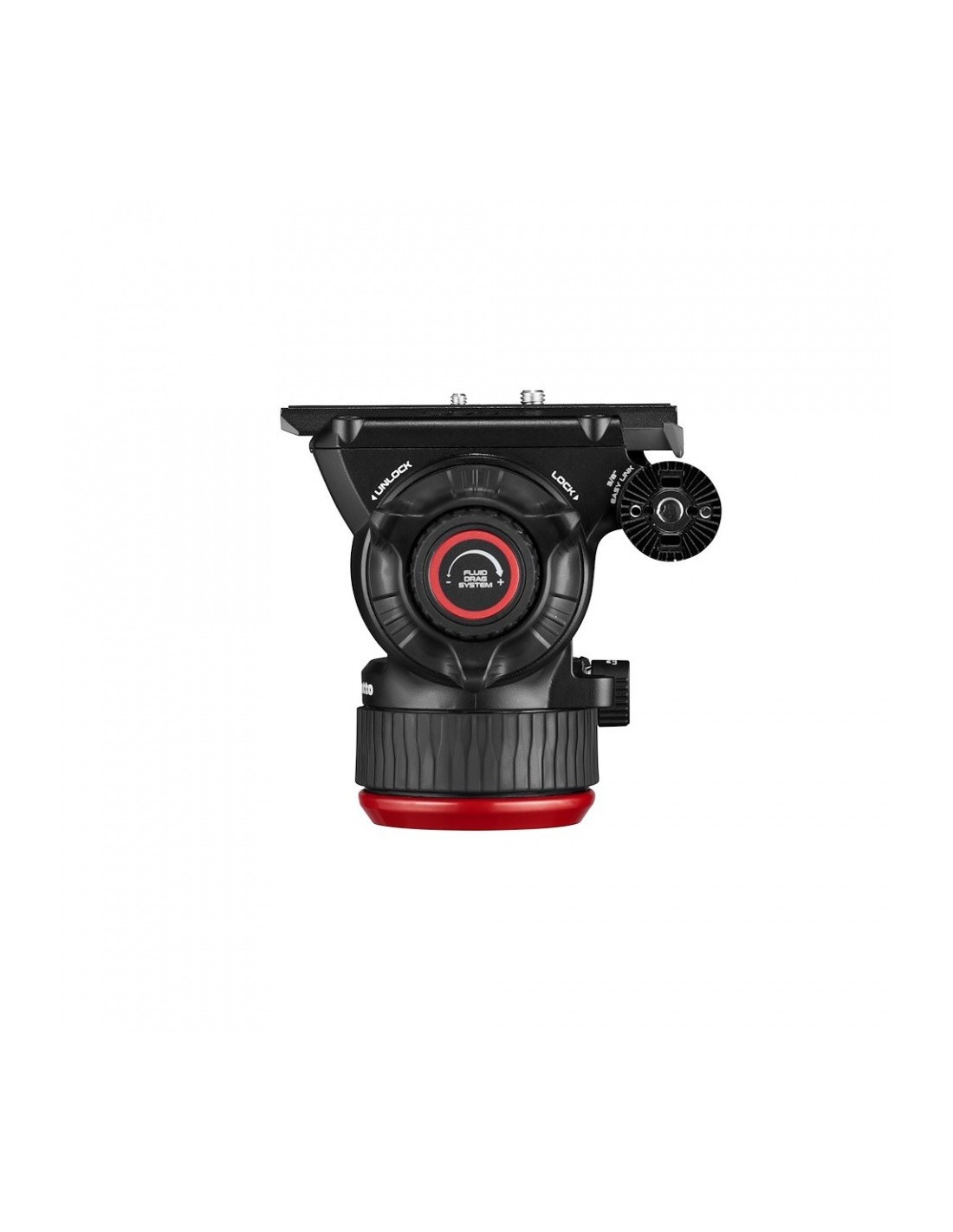 Otra característica que mejora la facilidad de uso es la nueva zapata deslizante de montaje lateral ''Side Lock'', para una configuración más rápida. Los conectores easy link cuentan con la reconocida tecnología antirrotación de Manfrotto y el sistema de pins Arri. En el lado izquierdo, encontramos una tapa que cubre el conector easy link 3/8” o el enganche para la pan bar, para evitar cortes durante el uso.