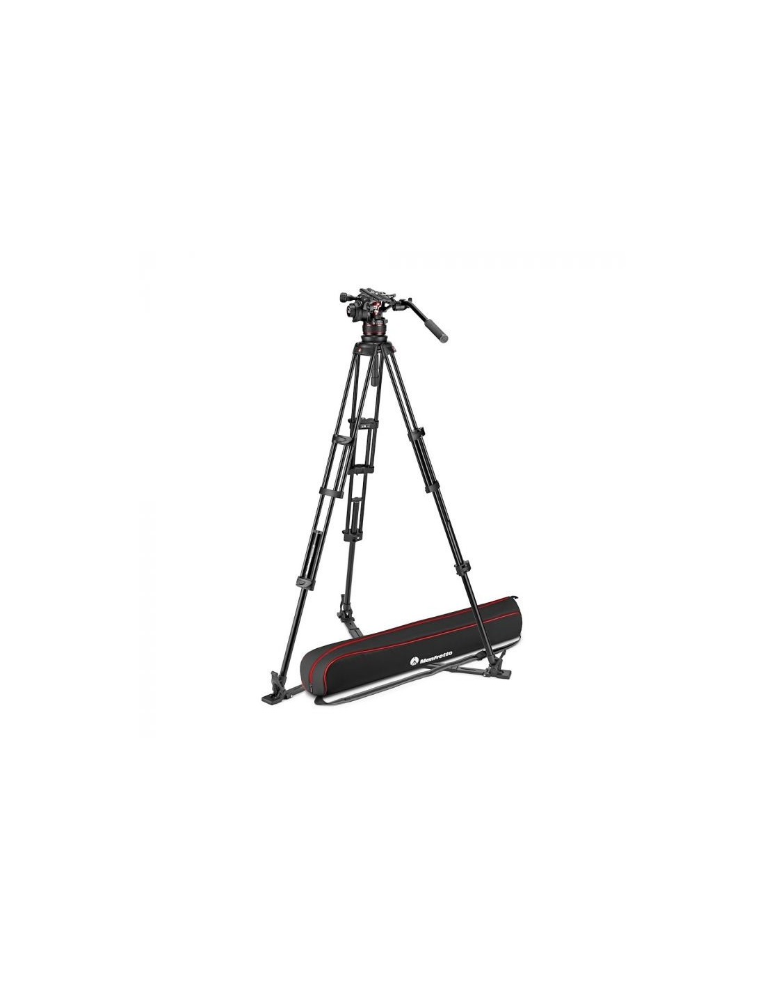 El sistema de vídeo incluye la rótula de vídeo fluida NITROTECH 612 (base plana) y el trípode en aluminio MVTTWINGA con estabilizador a ras de suelo.