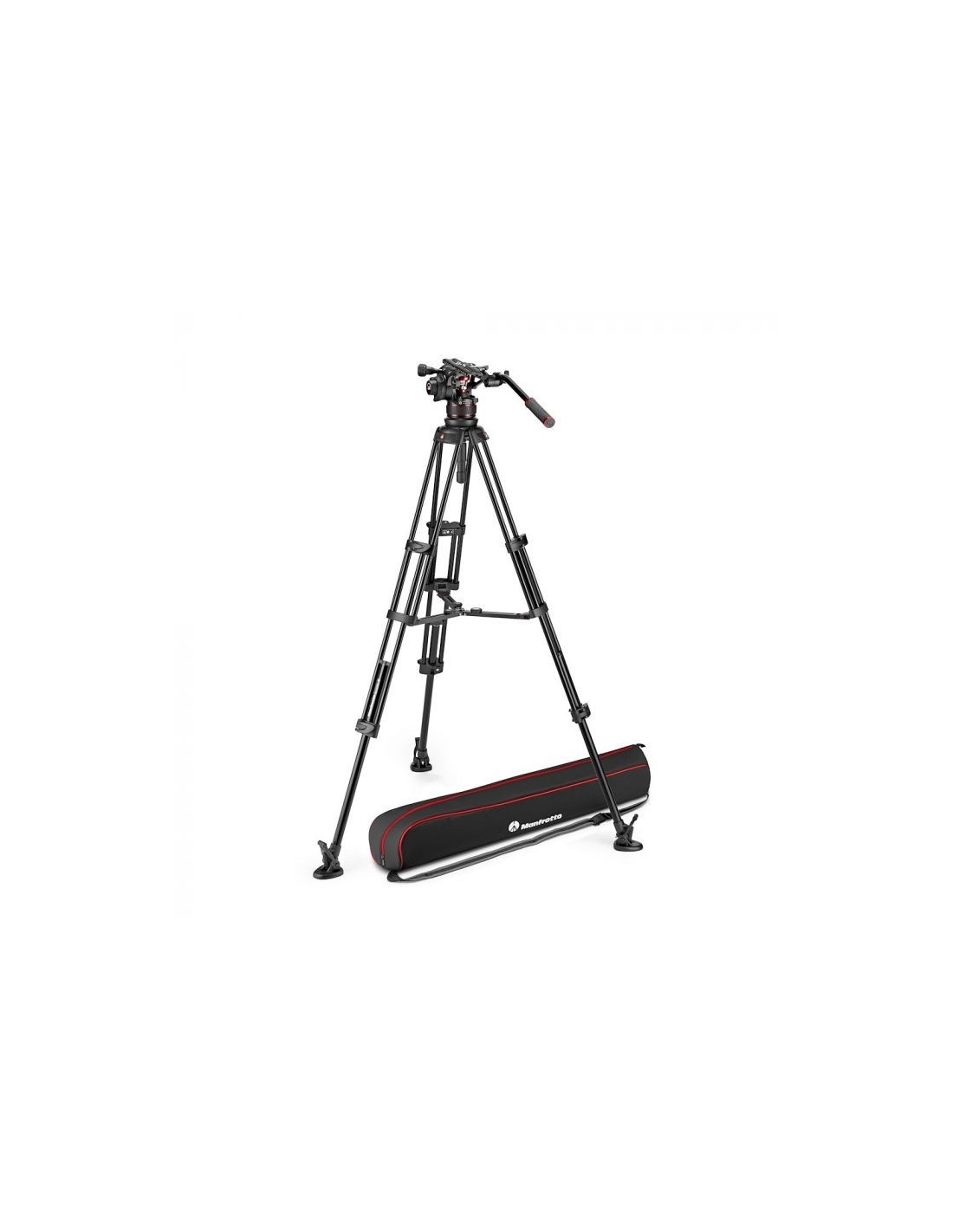 El sistema de vídeo incluye la rótula de vídeo fluida NITROTECH 612 (base plana) y el trípode en fibra de carbono MVTTWINMC con estabilizador a media altura.