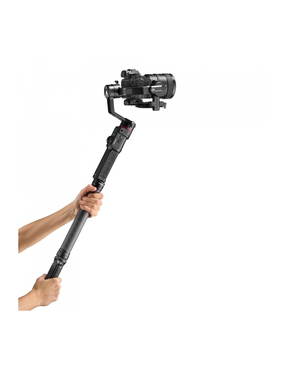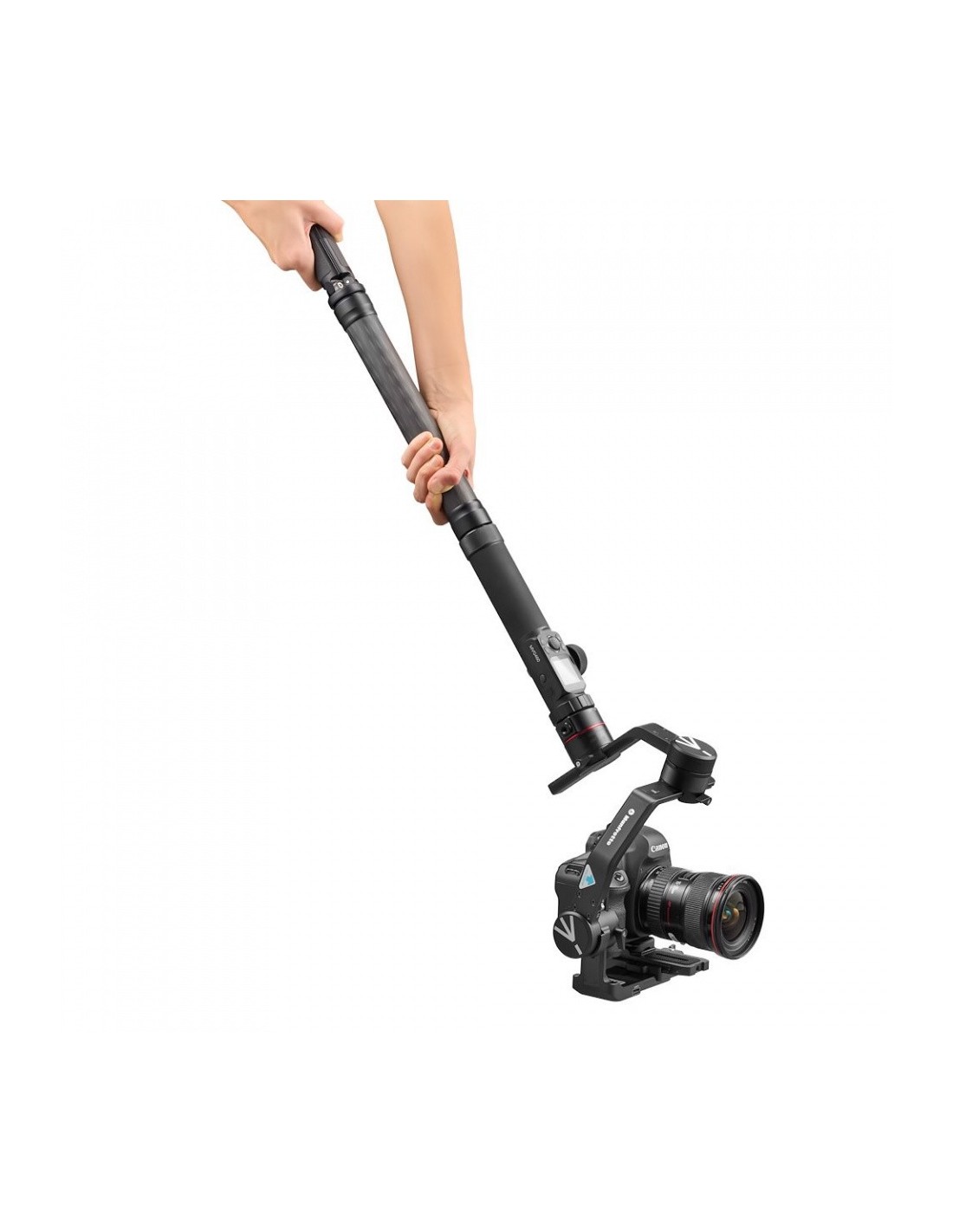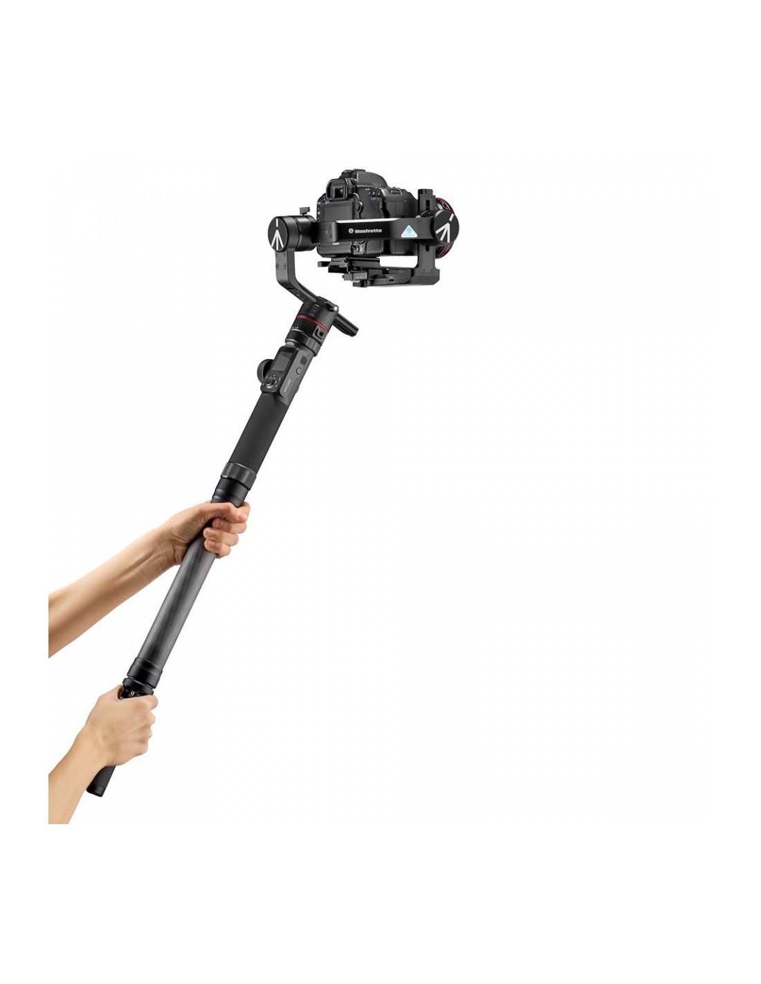 El Tubo de extensión en fibra de carbono para estabilizador Gimbal de manfrotto otorga al conjunto mayor flexibilidad: versatilidad con una sola mano